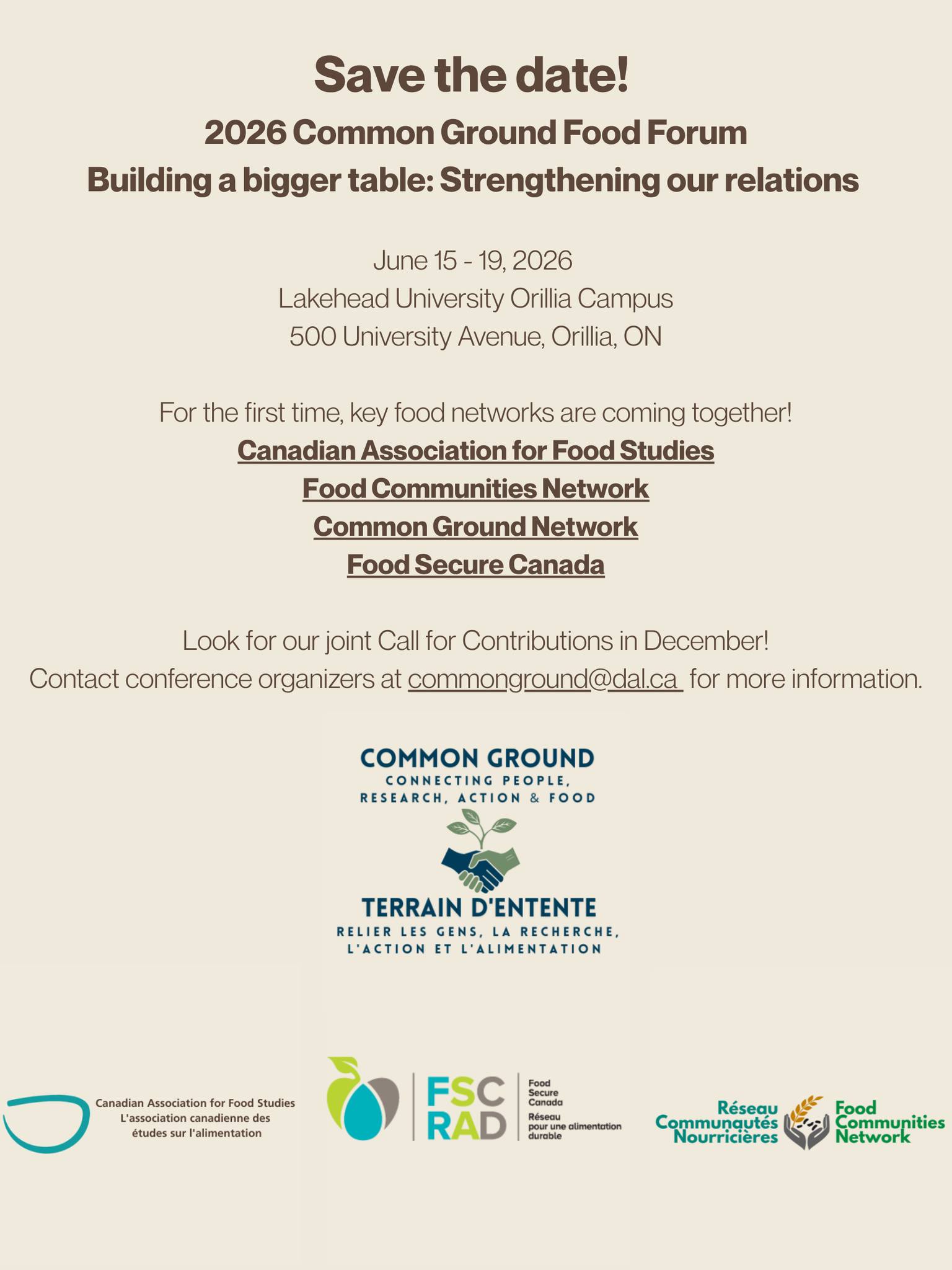 The 2026 Common Ground Food Forum, Building a bigger table: Strengthening our relations, has issued a call for contributions.