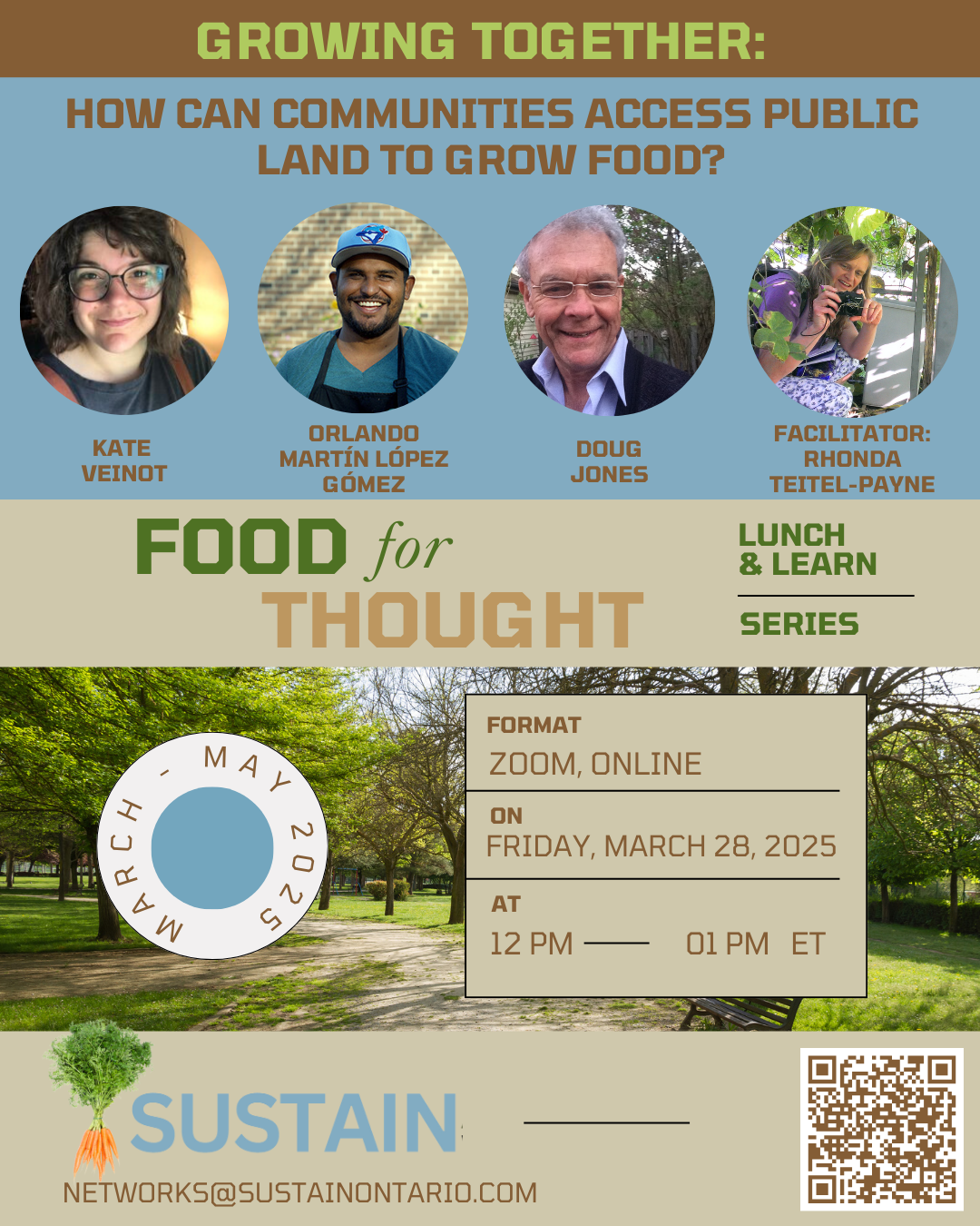 Orlando Martín López Gómez is the Community Food Growing Senior Manager at FoodShare overseeing food growing projects across Toronto in schoolyards, hydro corridors, and parks. He will share his perspective on how communities can access public land to grow food.