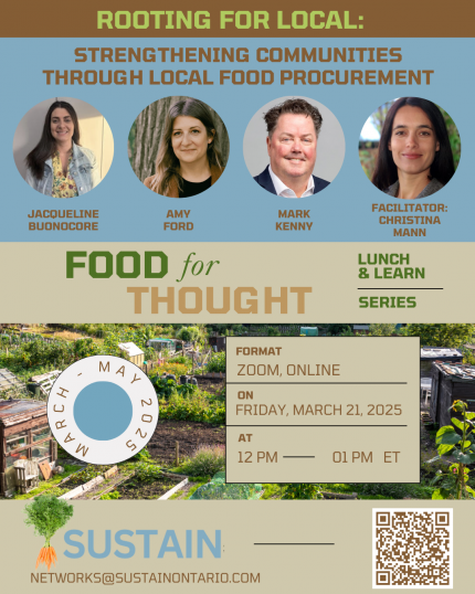 ‘Lunch & Learns’ will cover topics of importance to all of our networks starting with how to support robust local food economies in all regions across Indigenous Territories/Ontario.