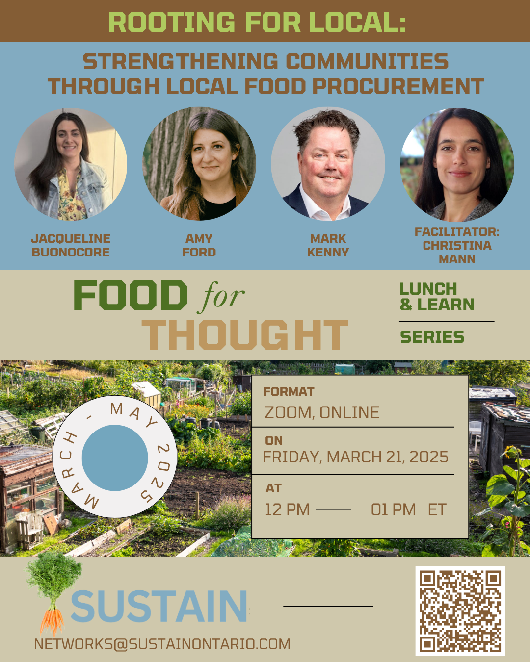 Facilitated by Rhonda Teitel-Payne, Sustain Board Member and Facilitator of the Community Food Production Network.